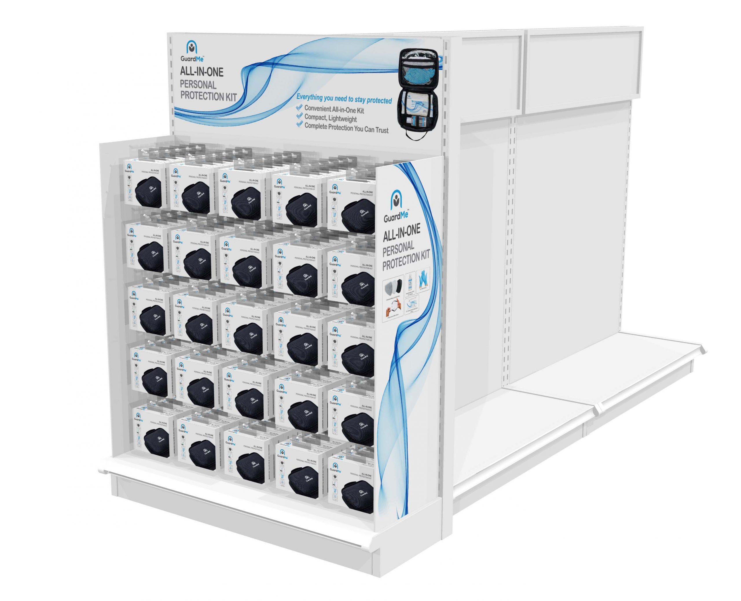 The third type of display we designed was an endcap. Endcaps are among the most valuable pieces of real estate in stores because of the traffic they enjoy. Given the importance that many retailers place on personal protection equipment, we wanted to be prepared with an endcap merchandising solution. Our intent was to leverage the existing gondola structure and utilize the pegboard back panel that is typically part of the existing store equipment.