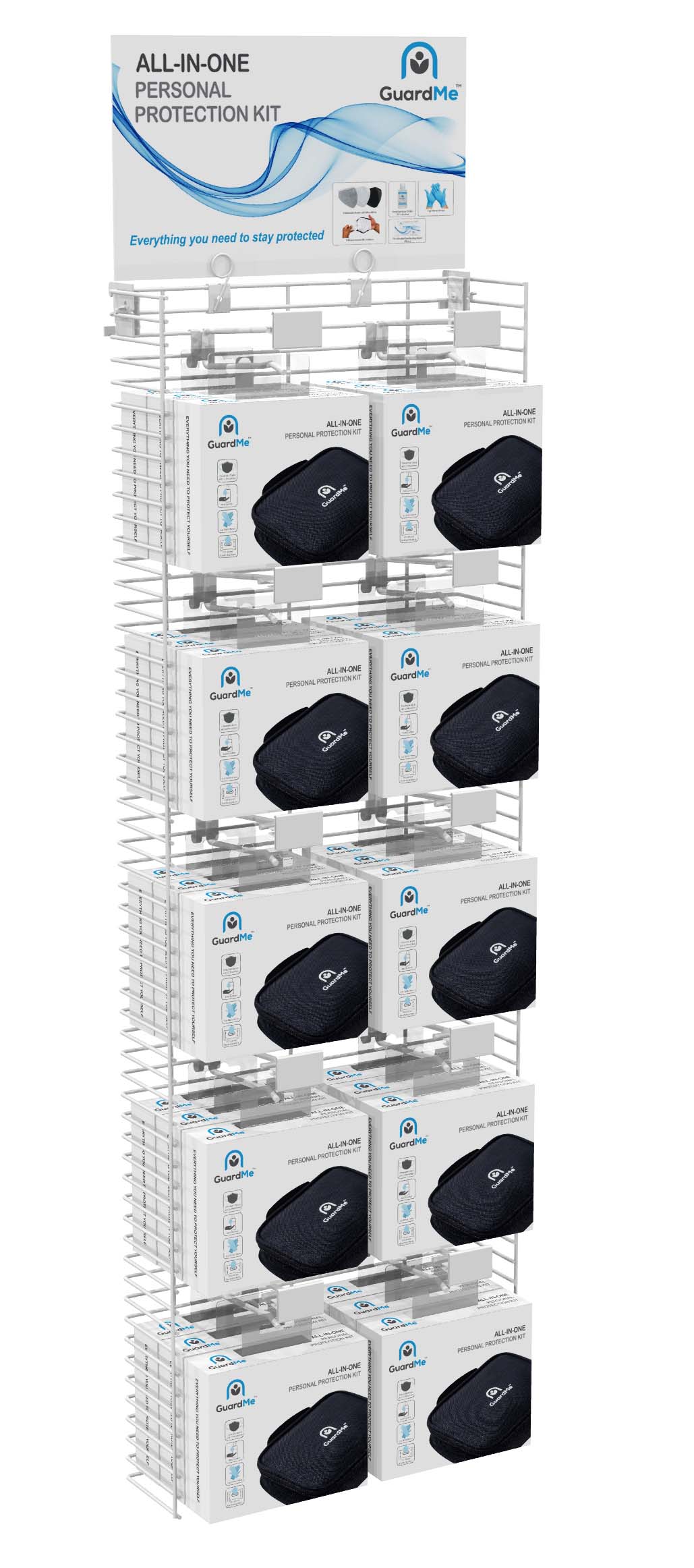 The GuardMe kit comes packaged in a retail box, the size and weight of which is important to understand as the box will serve as the key building block of a POP display program.